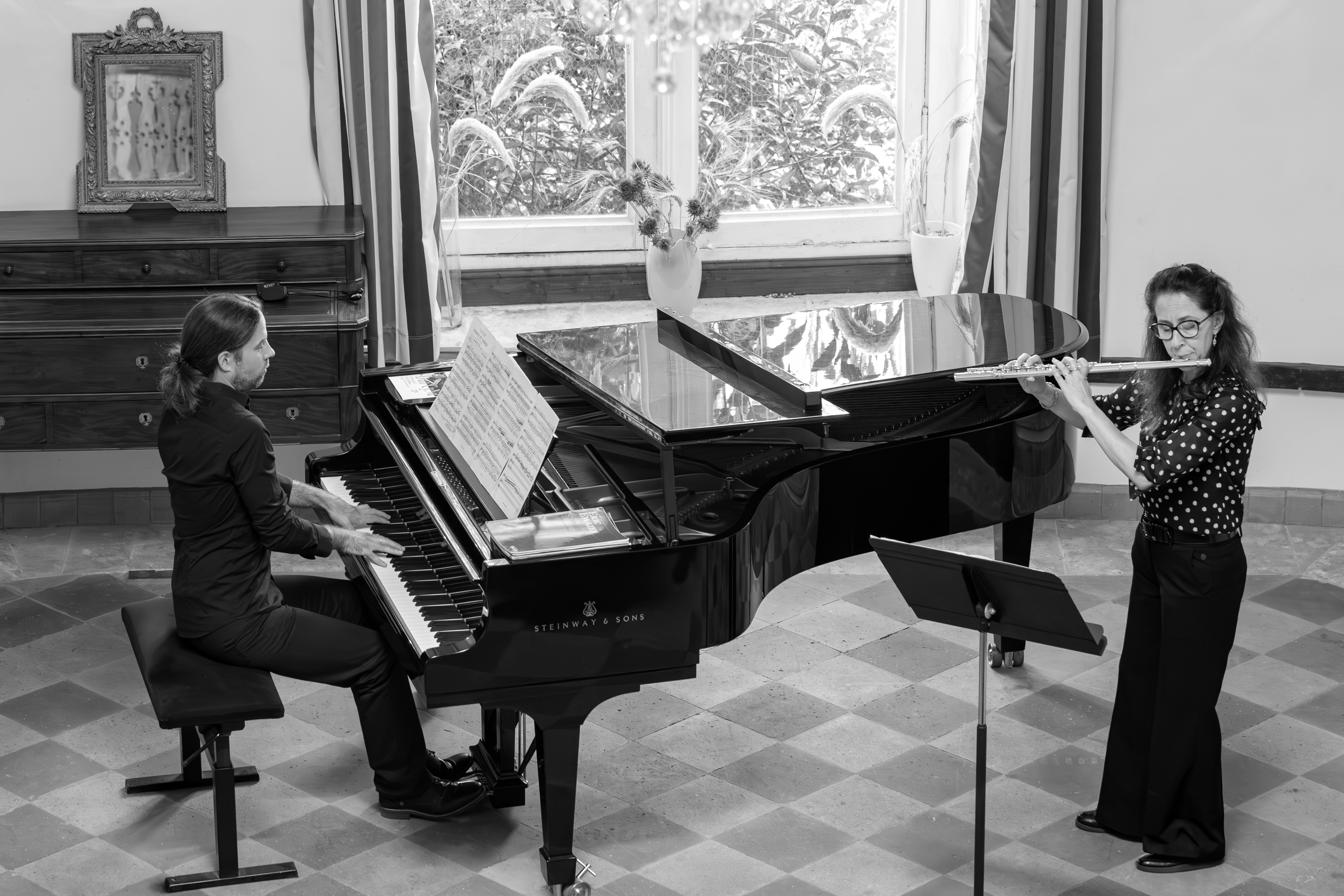 avec Le Duo CYNA Le duo Cyna naît de la rencontre entre Nathalie et Cyril. L’envie de partager la musique qu’ils affectionnent, celle d’un répertoire romantique pour flûte et piano. La découverte de compositeurs inconnus ou méconnus, permettant au public de faire de belles rencontres artistiques. Une conversation entre eux deux, une respiration commune, un même souffle et un plaisir sans cesse renouvelé de travailler ensemble. Nathalie Lourties fait ses études musicales au conservatoire de Toulouse, en classe de flûte avec Monsieur Gasciarino. A 12 ans elle est soliste pour la première fois, accompagnée par l’orchestre de chambre « Mélodia » sous la direction de Claude Cuguillère (chef d’orchestre du théâtre du Capitole). A 16 ans elle est musicienne remplaçante à l’orchestre national du Capitole de Toulouse et cela pendant 15 années consécutives, interprétant différents répertoire lyrique, symphonique ou ballet, sous la baguette de grands chefs d’orchestre comme Michel Plasson. Elle obtient à 18 ans son 1er prix de flûte, de formation musicale, de déchiffrage ainsi que celui de musique de chambre. Elle prend des cours avec Ida Ribéra (assistante de Jean-Pierre Rampal). A 19 ans elle est reçue au concours de l’école de musique d’Auch comme professeur de flûte. Quelques années plus tard elle réussi le concours du CNFPT et devient assistante spécialisée d’enseignement artistique. Elle fait partie de plusieurs ensembles de musique de chambre comme le trio de flûtes Séthi, le duo à cord’air, le Quatrio (3 flûtes et violoncelle), et ce tout nouveau duo avec Cyril Kubler, tout en se lançant dans les arrangements pour une grande majorité de ses formations. Bénévole depuis toujours, Nathalie fait partie de l’Ensemble Orchestral d’Auch depuis plus de 25 ans et depuis 2015 a créé avec Noémie Van Aerschodt l’Orchestre de flûtes du Gers (OFG) qui regroupe des professeurs et des amateurs de tout le département. Cyril Kubler est pianiste accompagnateur et KUBLER chef de chant. Formé aux conservatoires de Toulouse et de Rueil-Malmaison, où il obtient en 2009 son prix d’accompagnement mention très bien à l’unanimité, il bénéficie des conseils d’Angeline Pondepeyre, Inessa Lecourt, Susan Manoff, Gabriel Bacquier, Michel Sénéchal, Sophie Koch. Par son jeu délicat et expressif, il explore les grandes œuvres du répertoire d’hier et d’aujourd’hui, et se produit régulièrement sur scène, en France et à l’étranger dans de nombreux festivals lyriques. En 2012, il est nommé chef de chant de l’Opéra d’Izmir en Turquie, puis il part en Allemagne, comme coach vocal et korrepetitor à l’Opéra de Brême pour la saison 2014/2015. Revenu à Toulouse, il joue ponctuellement du célesta au sein de l’Orchestre National du Capitole et accompagne divers projets musicaux lyriques dans la région. Cyril est également titulaire d’un Diplôme d’État de formation musicale obtenu au C.E.S.M.D de Toulouse. Il vient d’être nommé chef de chant au Conservatoire de Bordeaux. Avec la complicité de Nathalie Lourties, ils décident de créer un duo piano/flûte et travaillent régulièrement ensemble un répertoire romantique. |